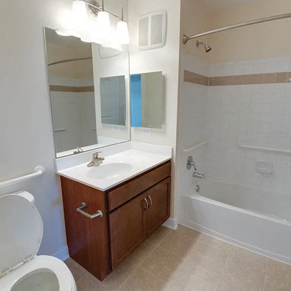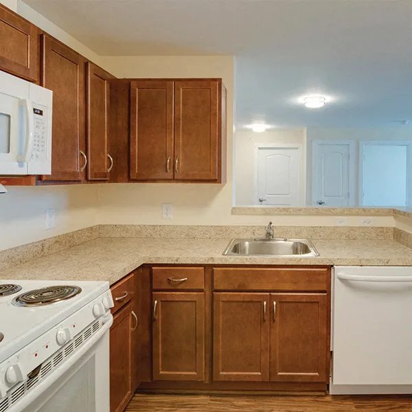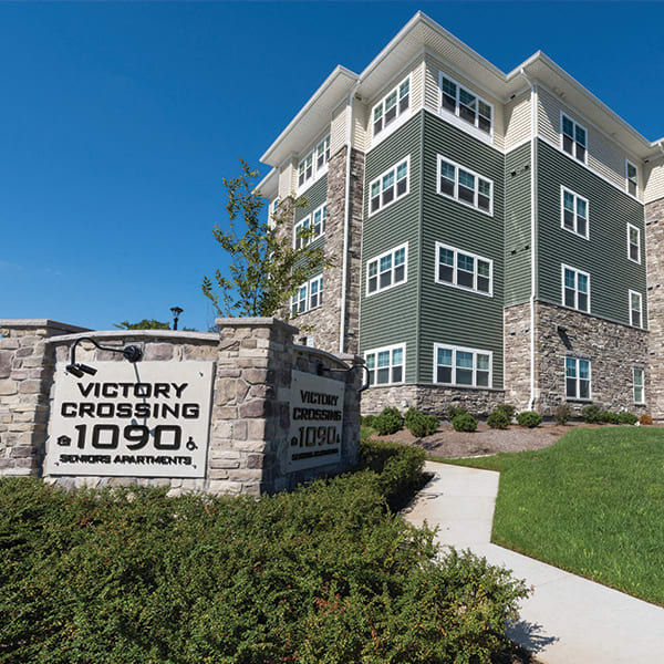 Victory Crossing Senior Apartments offers one- and two-bedroom apartments, each featuring a fully-equipped kitchen, a digital control thermostat, many LEED® certified amenities and a stackable washer and dryer. The living room and bedrooms feature plank flooring. Handicap accessible apartments are also available.